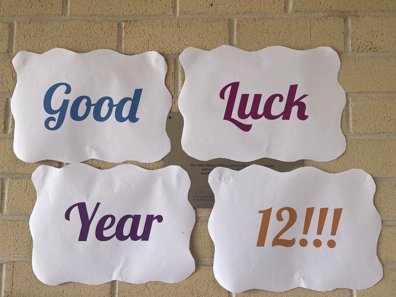 Primary students make 'Good Luck' poster for Year 12 students as they commence the HSC